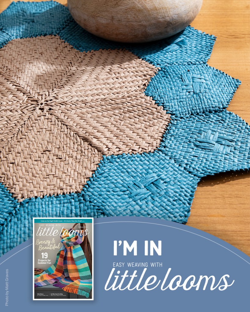 I made three different bunnies with squares woven on the TURTLE Square, 6″, R-regular sett loom, using Paintbox Simply Aran yarn. The yarn has a little stretch to it, make sure to weave loosely.
